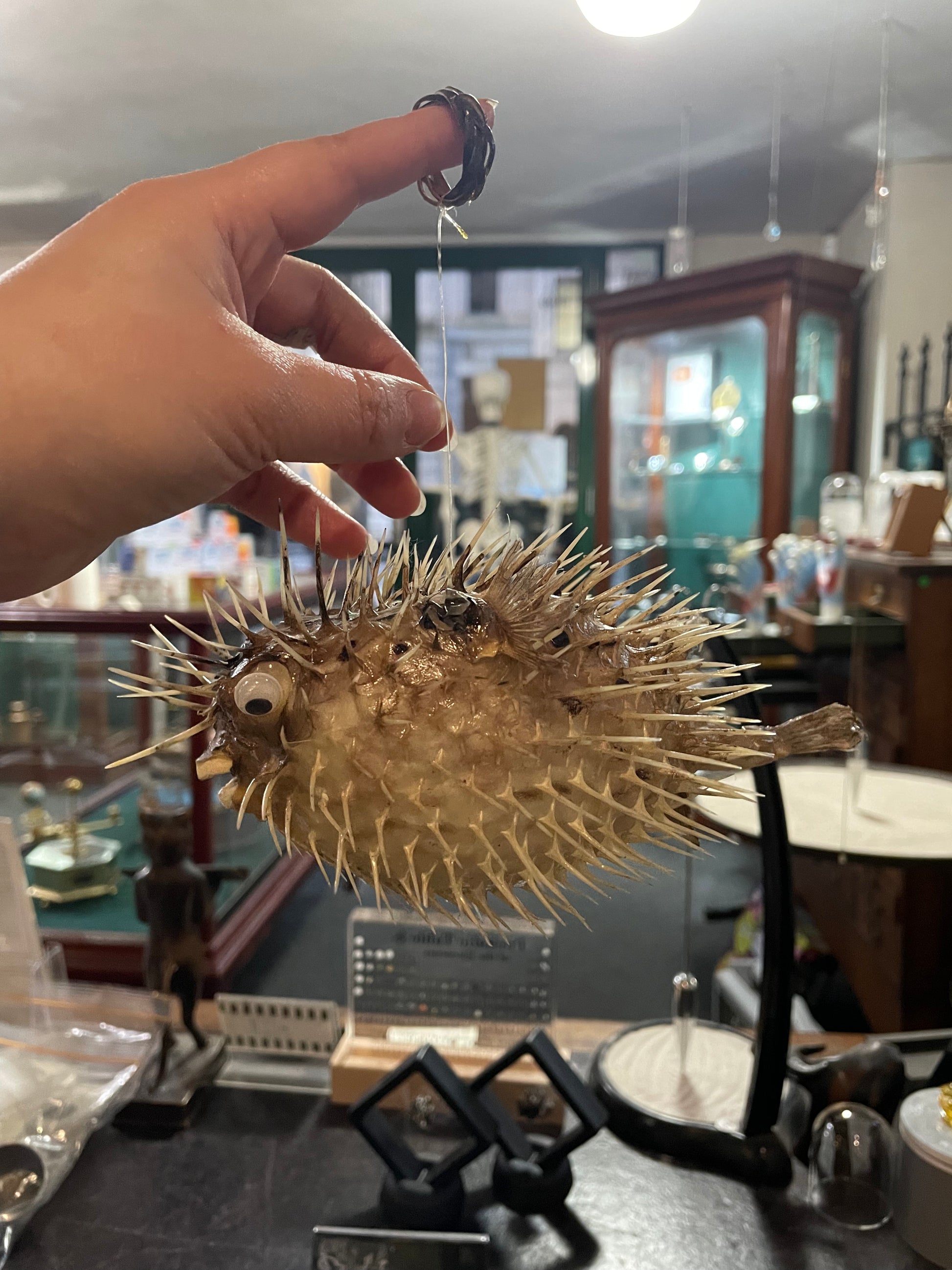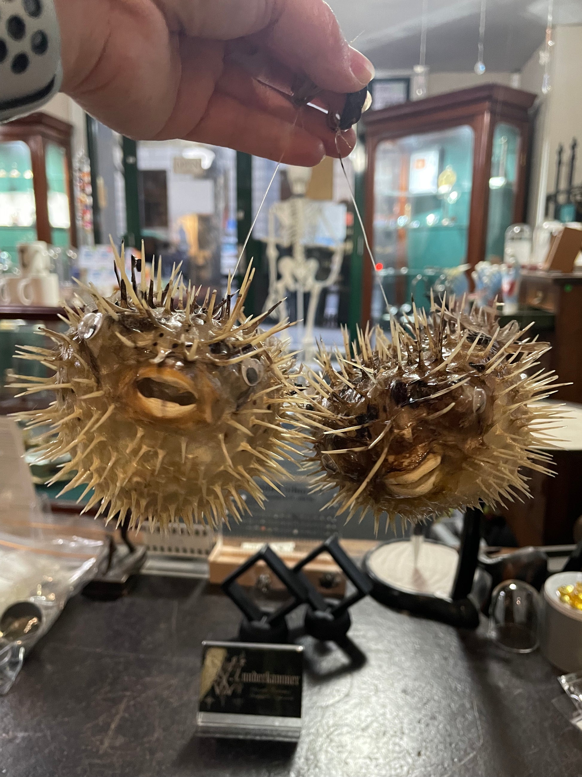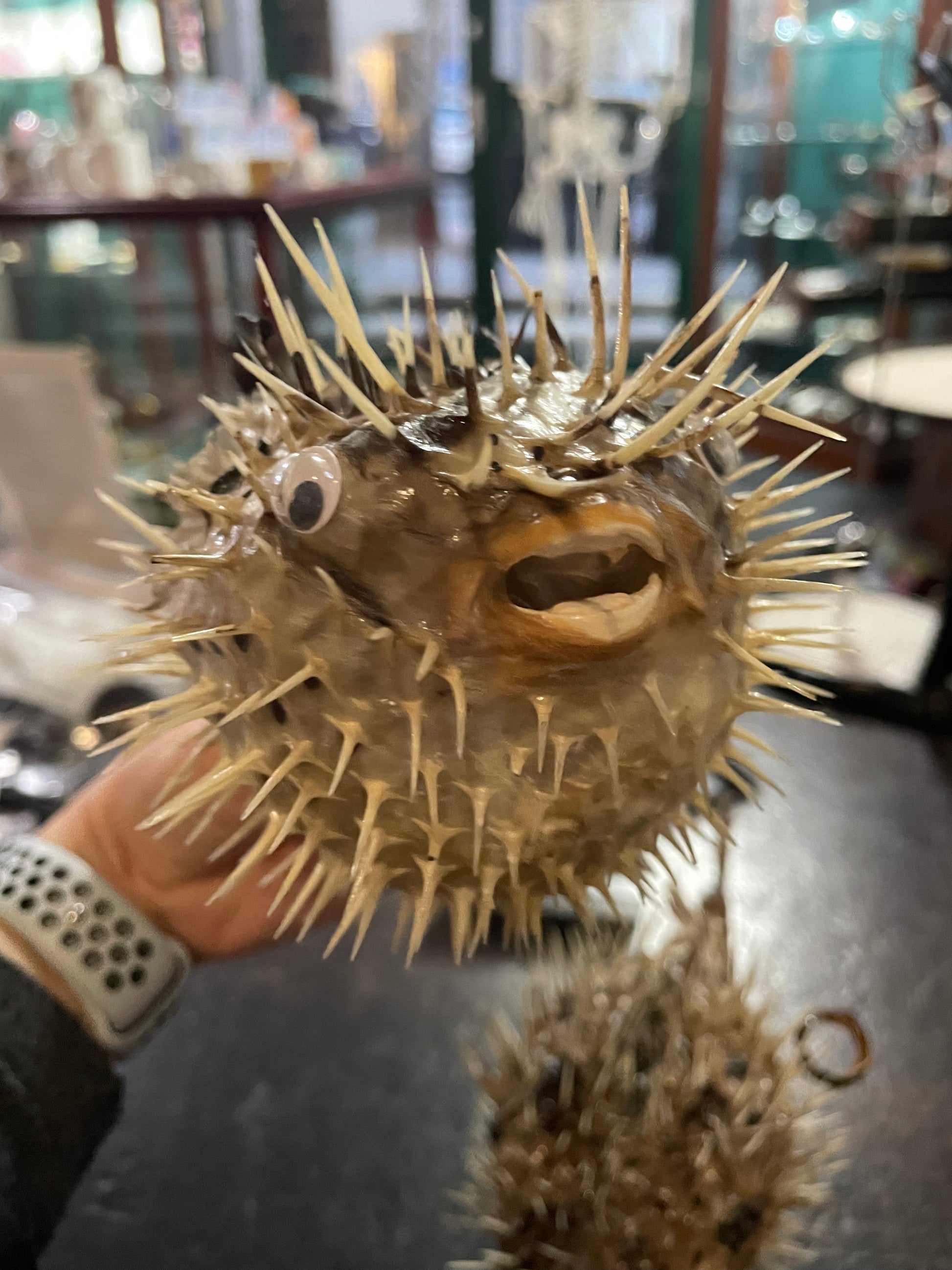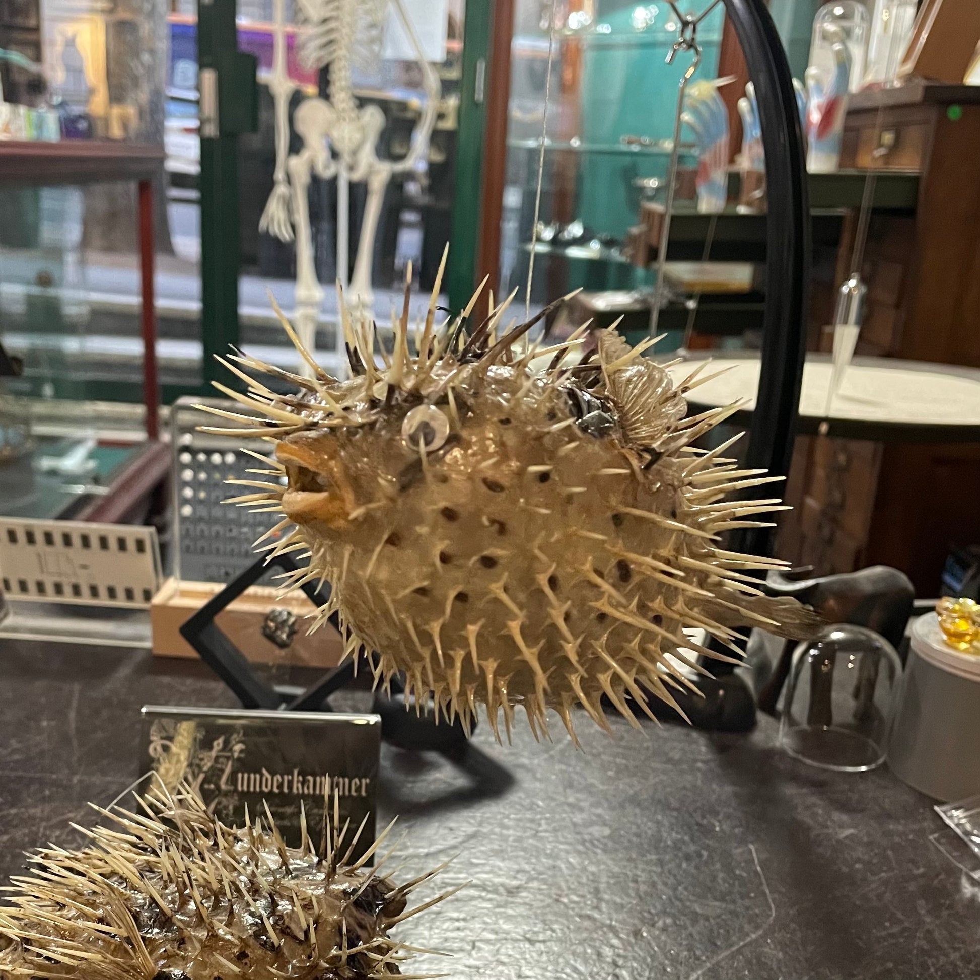 Real dried porcupine fish. About 16cm with hanging string. Mind your fingers, they are very prickly!