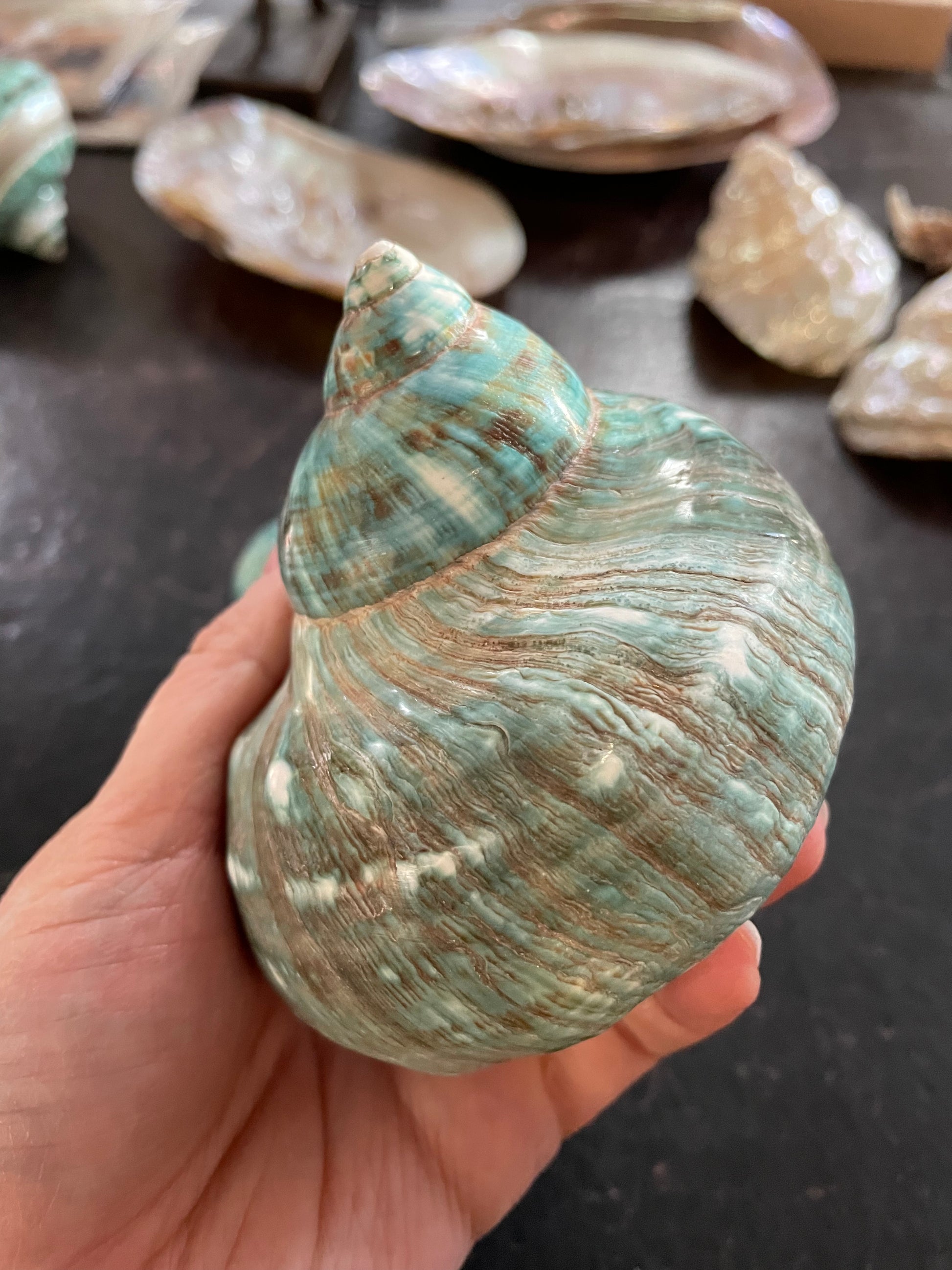 Natural Jade green turbo shells. As the shells are all natural, they vary slightly. Approximately 8-10cm each.
